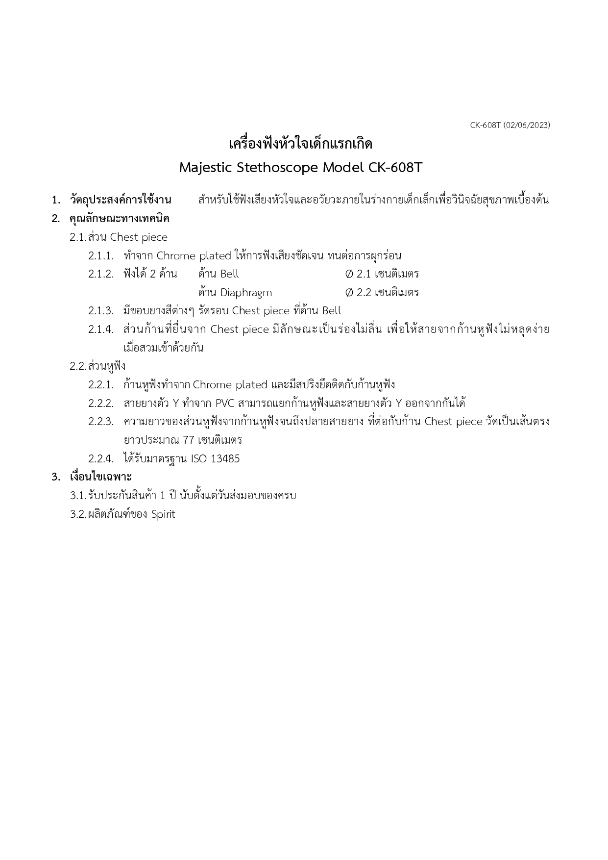 หูฟัง (Stethoscope) รุ่น CK-608T: SPIRIT